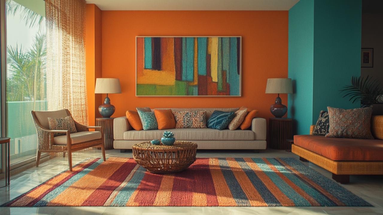 Parmi les couleurs tendances pour la décoration intérieure, le tabac offre une nuance particulière de brun-jaune qui rappelle les feuilles de tabac séchées. Avec ses valeurs RVB de 139, 108 et 66, soit le code hexadécimal #8b6c42, cette teinte apporte une touche organique et naturelle à vos murs ou à vos accessoires déco. Le tangerine, également appelé tanger, propose un orange-rouge vif avec son code hexadécimal #ff8800 et ses valeurs RVB de 255, 136 et 0, idéal pour dynamiser un espace sans le surcharger. La terre de Sienne, qui varie de l’ocre jaune au brun orangé, se décline notamment en terre de sienne brûlée avec son code hexadécimal #e97451 et ses valeurs CMJN de 0%, 53%, 68% et 9%. Cette couleur naturelle évoque les paysages méditerranéens et s’harmonise parfaitement avec les matériaux bruts.
